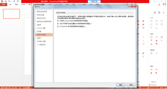 当用户需要取消安全模式时,首先在ppt的选项界面中点击信任中心,在信任中心中找到受保护的视图,在其中将三个选项都勾选,勾选完成后点击确定后退出,即可退出安全模式。
